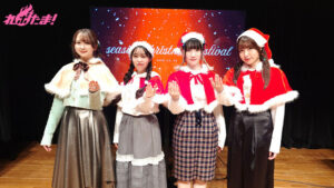 大西亜玖璃のファンクラブイベントが12月6日(土)、東京・飛行船シアターで開催された。 今年3月の「大西サミット」以来となるFCイベント。この日はクリスマスが近いということで、サンタのコスチュームにトナカイの角がついた帽 […]