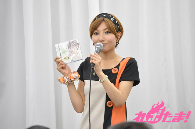 そして、スペシャルゲストとして作詞家のオノダヒロユキ氏と作曲家の千葉梓氏も登場。お二人を招いてのアルバム収録曲についてのトークとなった。オノダ氏は「Simply Lovely」について、「松田聖子さんみたいな曲を歌いたいと前回のイベントの時に(長谷川が)言っていたので、それを念頭に作りました」と明かす。さらに長谷川のブログなども参考にして、長谷川の好きなものを歌詞にとりいれたという。「おにぎりマーチ」については、「蒼凛のペンデュラム」の発売記念イベントで行なったアンケートで、おにぎり姫の衣装が人気だったことから生まれた楽曲だそうで、そのイベントに足を運んでいたオノダ氏が作詞を、千葉氏が作曲を担当することになったとのことだ。