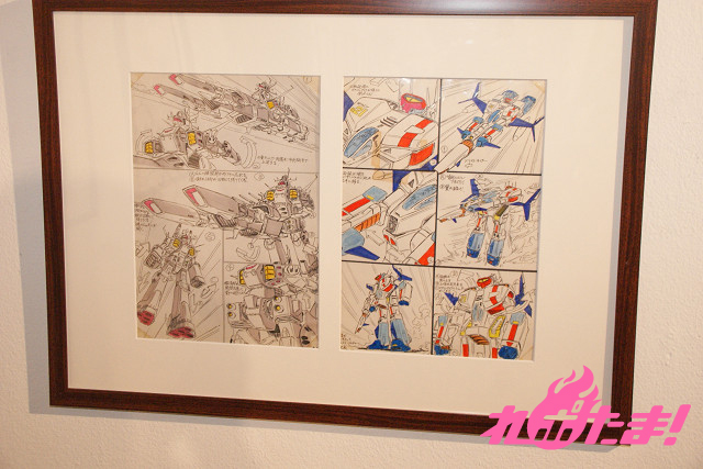 同じく当時描かれた、『超時空要塞マクロス』『超時空要塞マクロスⅡ』の版権イラスト、『マクロスプラス』や『マクロス7』『マクロスゼロ』のセル画や原画も並べられており、実に壮観だ。