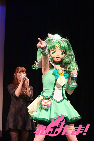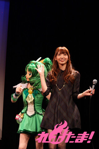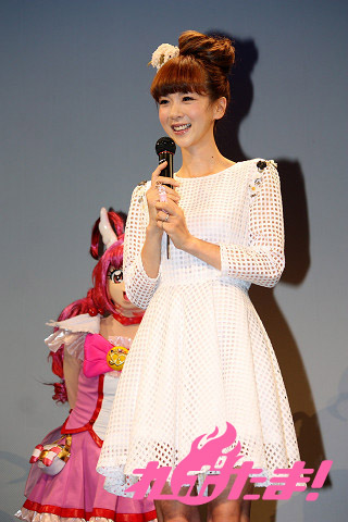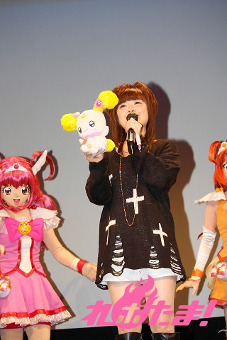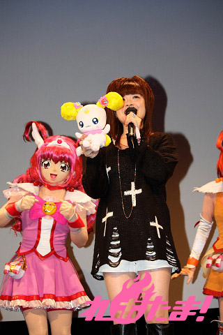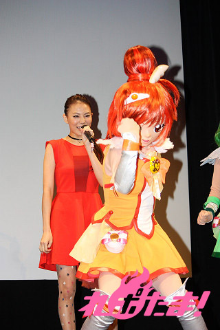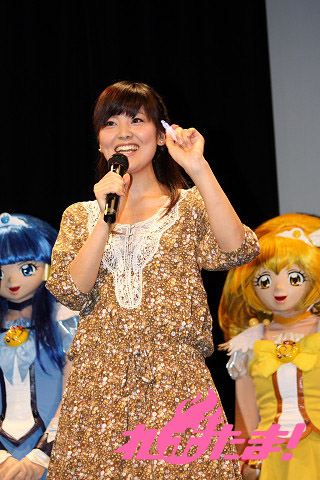 さらにここで、今年4月に女児を出産してママになったばかりという、タレントのほしのあきさんがスペシャルゲストとしてステージに登壇。ほしのさん自身はまだまだプリキュア初心者とのことだが、友達の子供たちもプリキュアの大ファンということで、カラオケでも主題歌を一緒にデュエットしているなどのエピソードなどを語ってくれた。