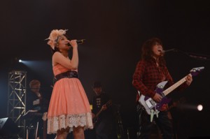 そしてチエが登場。オープニング以来再び二人が揃っておくるのは彼らの一番の代表曲である「突撃ラブハート」。興奮冷めやらぬ中、ライブは一旦、幕を閉じる。