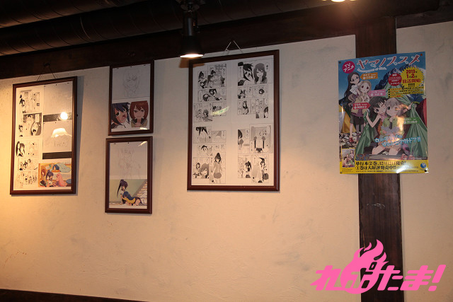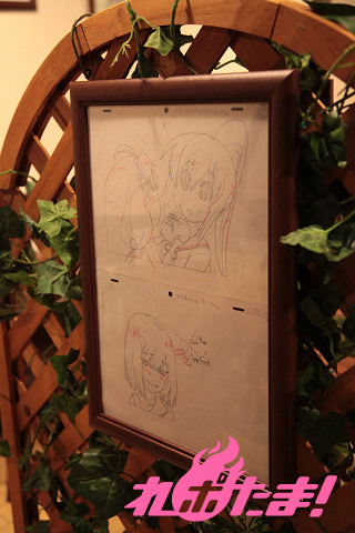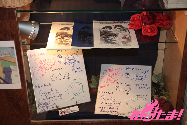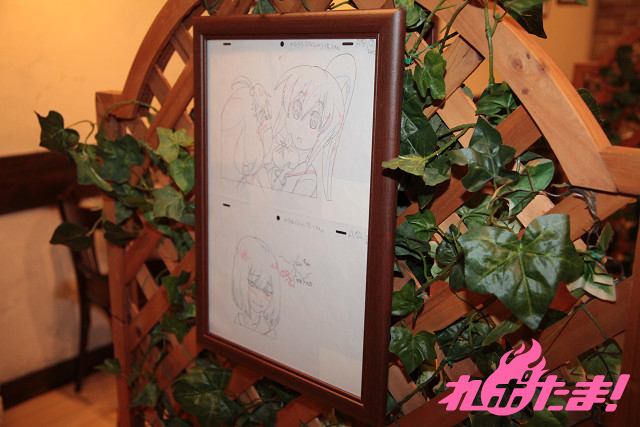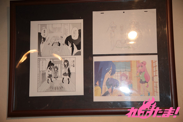 ▲作画担当のPiyo氏、アニメの板垣監督のイラスト入り直筆サイン・アフレコに使用された台本も展示されている。