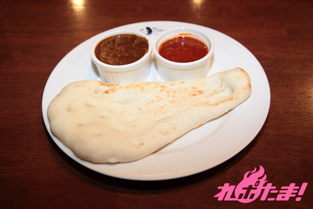 かなえが普段食べている、新庄家のナンカレー。辛いレッドカレーと、中辛のビーフカレーの2種類が楽しめる。