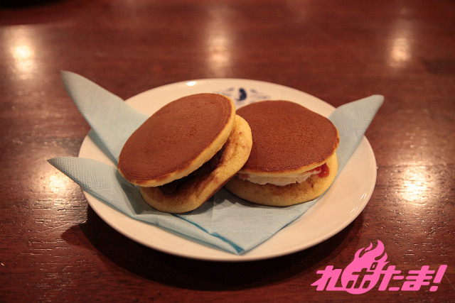 なすのがテニス部のみんなと一生懸命つくったどら焼き。あんこ味と、イチゴチーズケーキ味の2つの味が楽しめる。