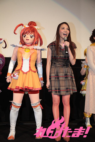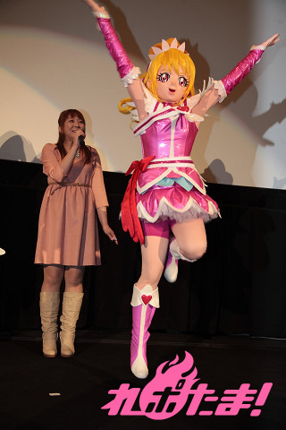 自ら演じたプリキュア戦士のキメゼリフと共に自己紹介し、満員に膨れ上がったファンからは拍手が上がった。