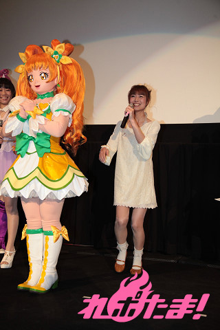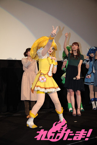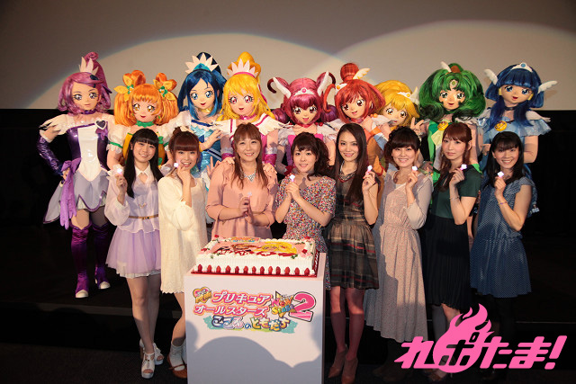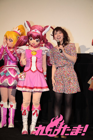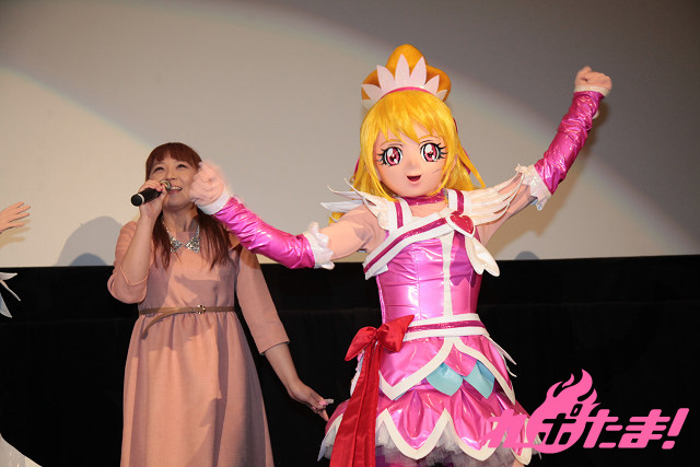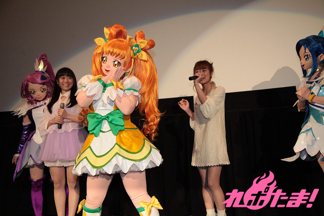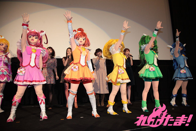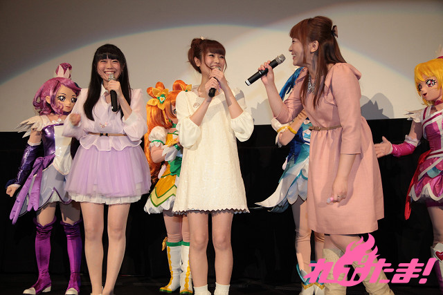 その初日舞台挨拶が行われ、東京・新宿バルト9には『ドキドキ!プリキュア』からキュアハート役の生天目仁美さん、キュアロゼッタ役の渕上舞さん、キュアソード役の宮本佳那子さん、『スマイルプリキュア!』からキュアハッピー役の福圓美里さん、キュアサニー役の田野アサミさん、キュアピース役の金元寿子さん、キュアマーチ役の井上麻里奈さん、キュアビューティ役の西村ちなみさんが登壇。