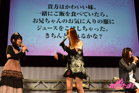 また、イベント後半は『演じてシチュエーション』と題して悠木さんと小林さん、釘宮さんと日笠さんがタッグを組んで、抽選ボックスの中の紙に書かれたシチュエーションを演じるミニゲームにチャレンジしたりとステージは大盛り上がりとなっていた。