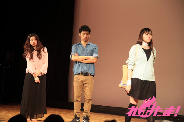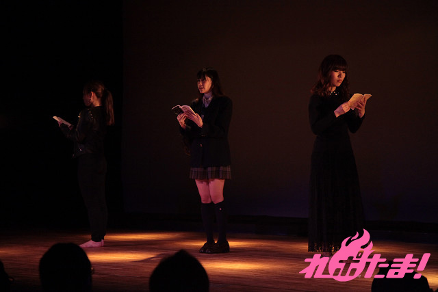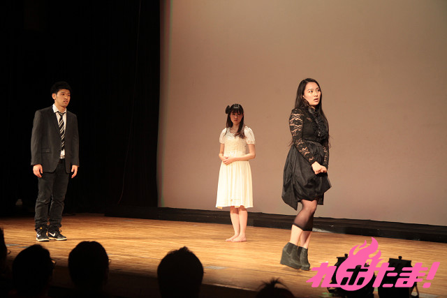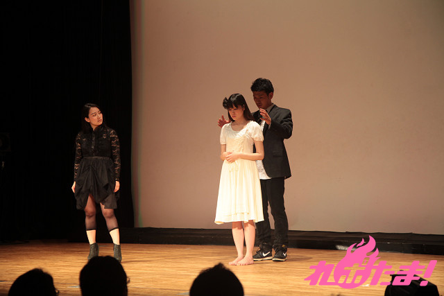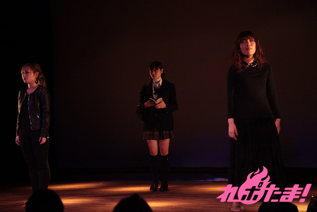 何度生まれ変わっても殺されてしまう悲劇のヒロイン・森下さくら役を森千早都さん、彼女に嫉妬する女子高生・よしの役を古木のぞみさんが熱演。この日に向けて行われてきた稽古の成果を見せてくれ、集まった観客もからも拍手喝采でした。