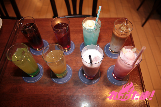 上記のお好きなコラボドリンクを先行販売のグラス「うーぱグラス」または「シュタインズ・ゲートグラス」に入れてご提供いたします。 ※お帰りの際に新しいグラスをお渡しいたします。