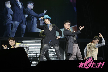 パラパラの振り付けや、歌いながらダンサーの持つ鏡を見て自分の髪の毛を整えたり、上着をかっこよく脱ぎ捨てたりと楽しいステージだ。投げキッスを会場に送るとファンからの黄色い悲鳴が会場に響く。