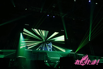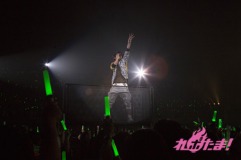 ハードなナンバー「String of pain」を歌った柿原は、緑色の光を手の中に入れたり、レーザービームを操るパフォーマンスも披露。ラストを閉めたのは神谷さん。「気持ちを込めて歌います」と、「ハレのち始まりの日」を歌った。