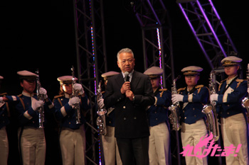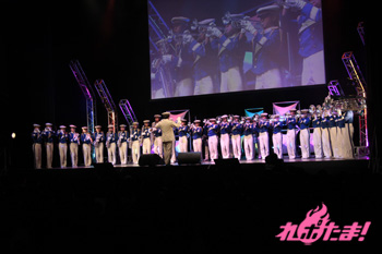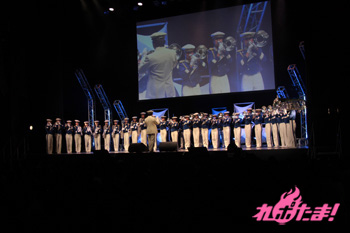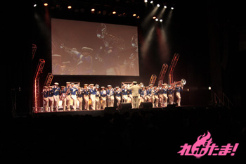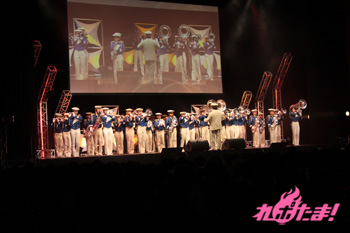 続いては再び演奏パート。顧問の先生は「先の東日本大震災で、大洗の街は風評被害に苦しみました。そんな中、『ガルパン』のおかげで町に活気が戻りました。皆さん、是非遊びに来てください!」と語り、場内から拍手が上がった。