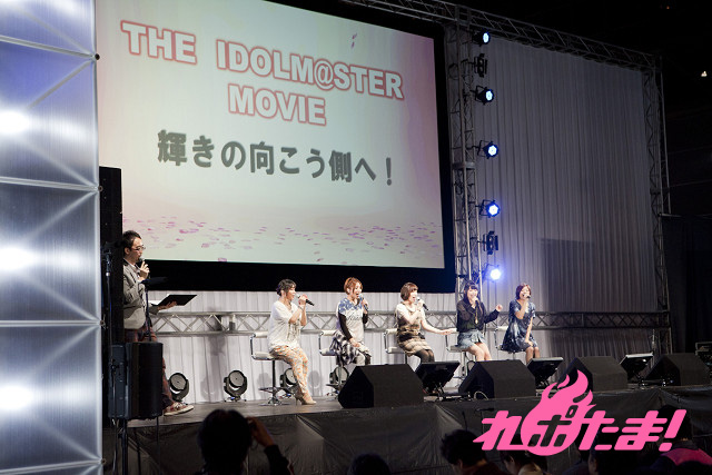 2011年7月にはアニプレックスがTVアニメ化しており、先月行なわれたライブにて劇場版アニメの製作が発表されたばかり。今回のステージには天海春香役の中村繪里子さん、星井美希役の長谷川明子さん、高槻やよい役の仁後真耶子さん、双海亜美・真美役の下田麻美さん、我那覇響役の沼倉愛美さんが登場、アニプレックス・高橋ゆま氏の司会でトークを行なった。