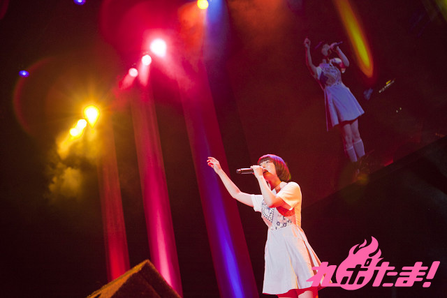 ドラマが終わると花澤が登場し、アニメのED「happy endings」を歌う。このサプライズに、会場も歓喜。自然と手拍子が起こっていた。この曲は、シリアスな展開が続いたアニメの前半の中で、ホッとできる瞬間を作ってくれていた曲なので、イベントの最後に聴けて、すごく良かった。