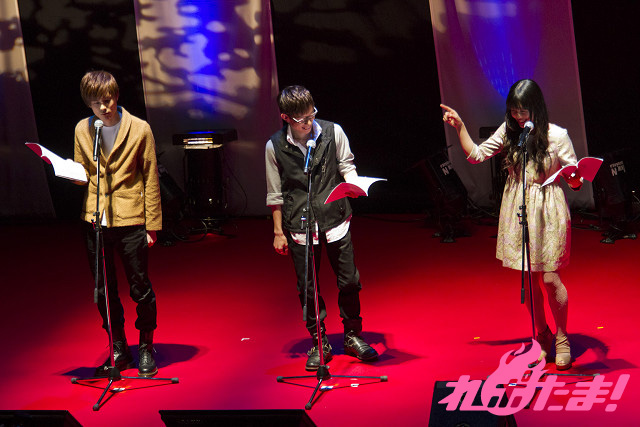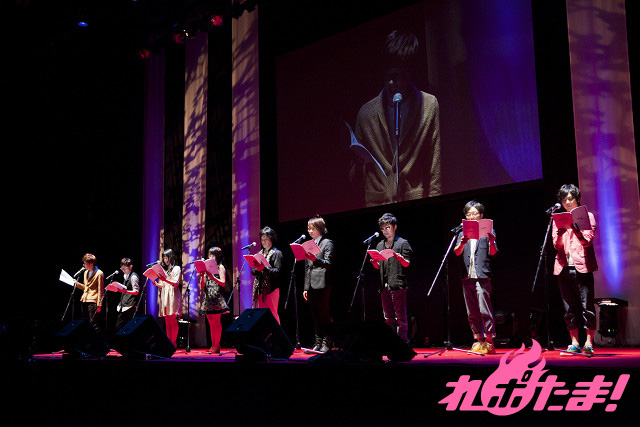 イベントは、キャストが舞台上で勢揃いしてのドラマ(生アフレコ)からスタート。内山昂輝(滝川吉野役)、豊永利行(不破真広役)、沢城みゆき(鎖部葉風役)、花澤香菜(不破愛花役)、小山力也(鎖部左門役)、水樹奈々(エヴァンジェリン山本役)、野島裕史(星村潤一郎役)、諏訪部順一(鎖部夏村役)、吉野裕行(鎖部哲馬役)、梶裕貴(羽村めぐむ役)が、声を発するたびに大きなどよめきが起こる。反応がダイレクトなのはイベントならではだ。