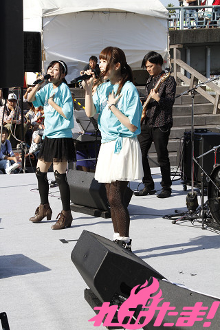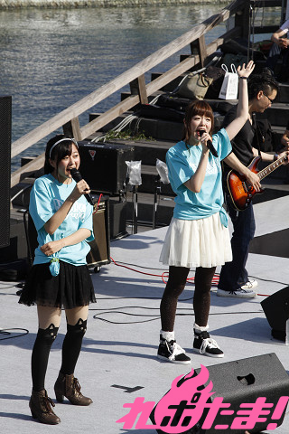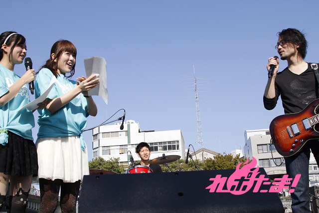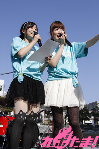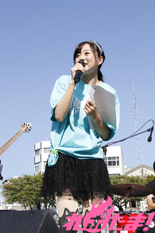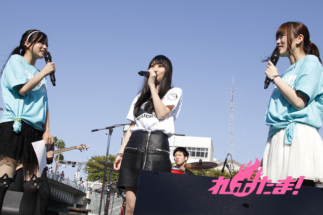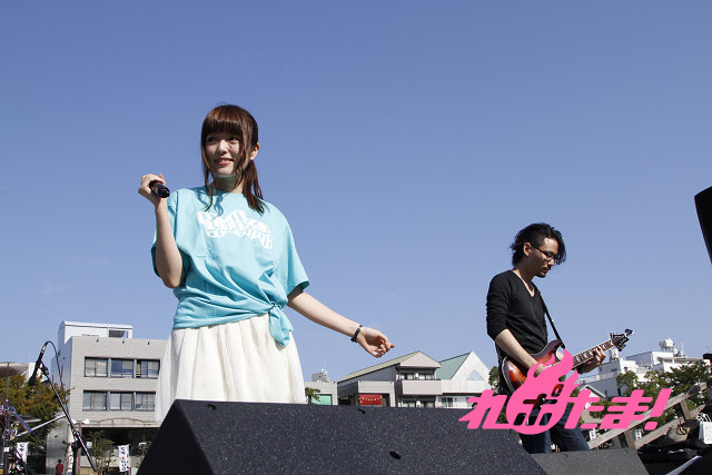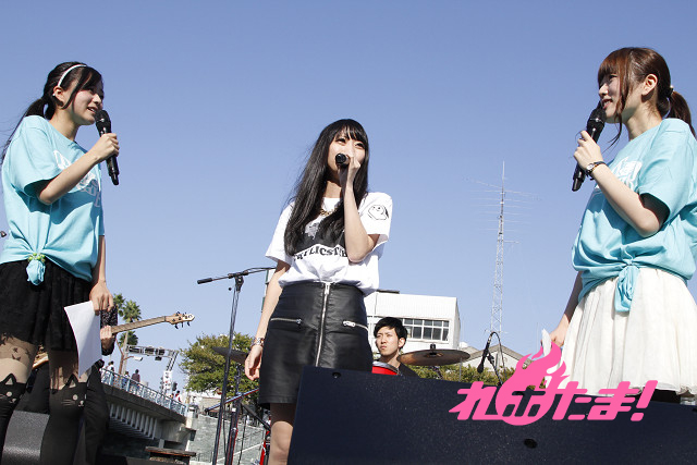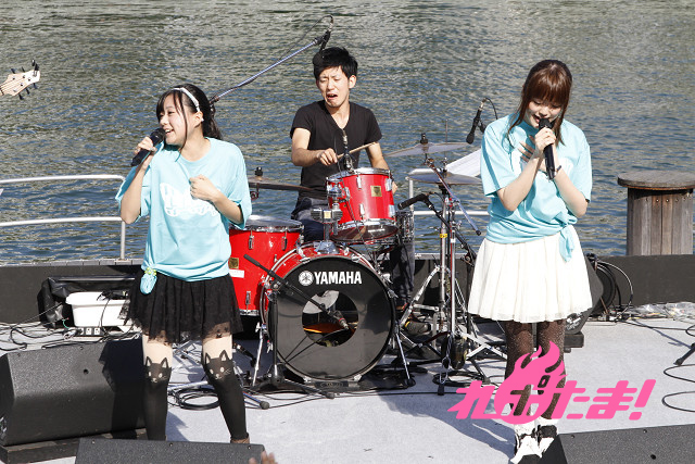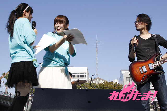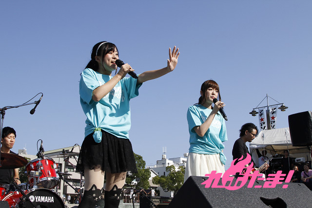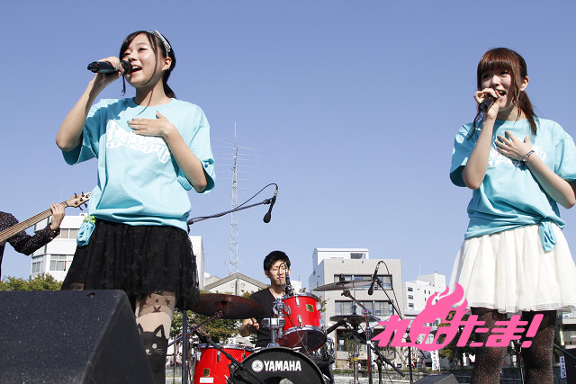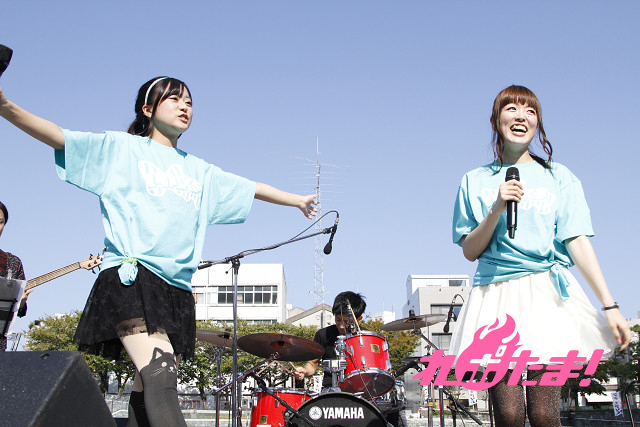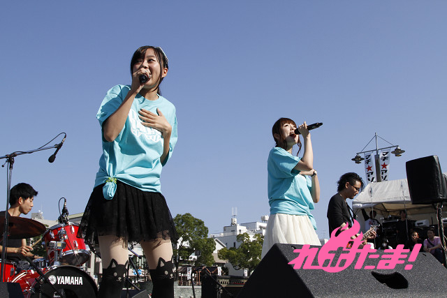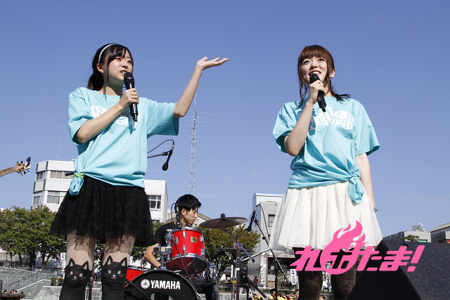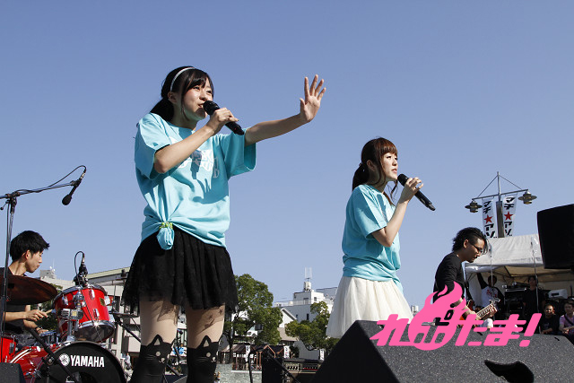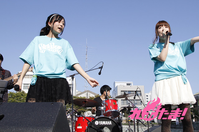 「マチ★アソビ」に来るギリギリに出来上がった曲ということで、ほとんど練習していないこともあり、歌詞や振り付けを間違えてしまう二人だったが、バックバンドで作曲を担当した、ギターの阿部隆大さん(バンド・ACRYLICSTAB(アクリルスタッブ))に「良かったよ!」と言われ、会場からも拍手が。