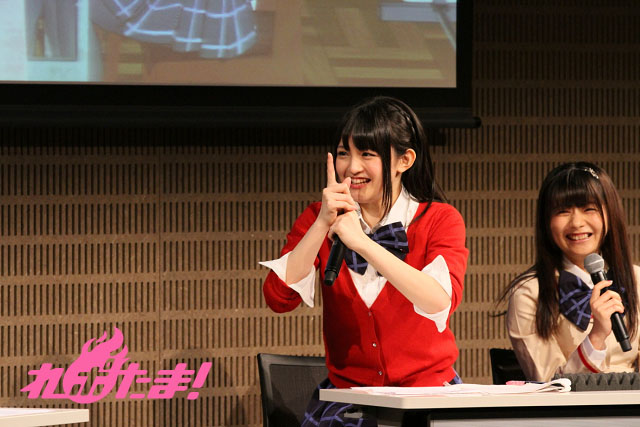 イベントは主題歌「Stand Up!!!!」からスタート。いきなり歌い出しを西が歌詞を飛ばして笑ってごまかしたが、本編2期12話かけて進化してきたことを思えば、これはこれでアリ(笑)? Cメロでの荻野の「風が流れ“ルー”」の息遣いが最大の聴きどころだと西は語った。その後に歌う大橋を笑わせる気マンマンの荻野の歌いっぷりには会場も笑いがこぼれていた。