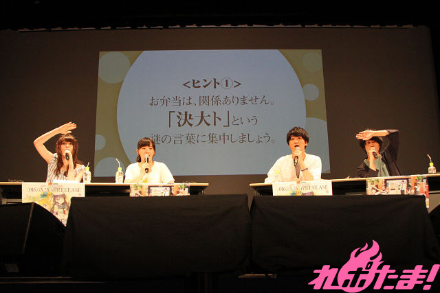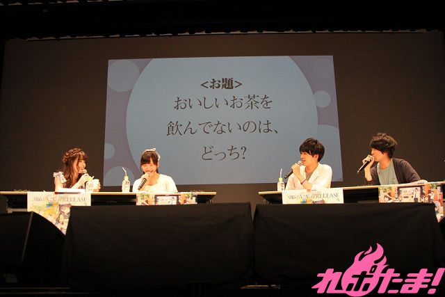 「どっちがウソをついているでしょうか対決!」では、まずハルタチームが「美味しいお茶を飲んでいるのはどっち?」ということで、ブリドカットさんと山田さんが美味しいお茶と苦いお茶のどちらを飲んだかを当てることに挑戦。山田さんの見事な演技で斉藤、山下ペアをだますことに成功! 一方のチカチームは「かわいい猫の写真を見ていないのはどっち?」というお題に挑戦。山下さんが見ていたのは、なんとブリドカットさんの宣伝材料用に撮られた写真(笑)! これには本人も赤面し、会場は大爆笑だった。