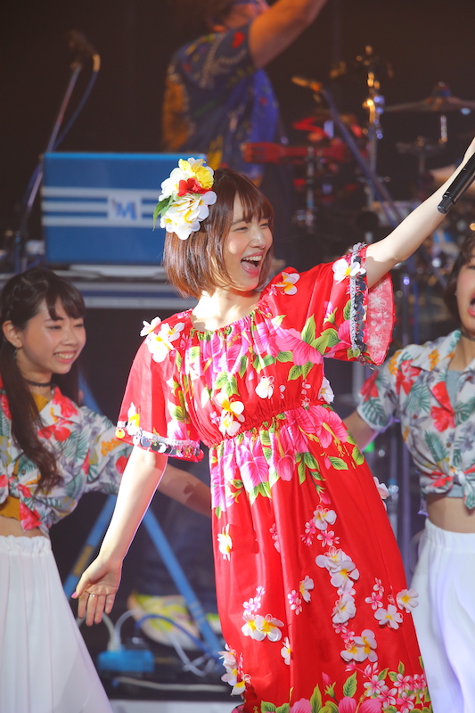 MCパートでは開口一番「初の大阪ライブ!」と嬉しそうにファンに呼びかけ、ファンも声援で喜びを共有した。さらに「今回のライブは私との夏デートがコンセプトです」と告げると、会場に集まったファンからは大きな歓声と拍手が沸き起こった。