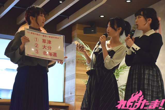 また、温泉クイズのコーナーでは、温泉の多い都道府県や温泉の定義となる音頭などのトリビアルな問題を楽しんだ。またフリートークでは高橋がお気に入りの衣装を聞かれ、12月24日に開催されたセカンドライブで披露する新衣装を挙げた。なお、衣装を手がけるのは48グループなども手がけるオサレカンパニーである。