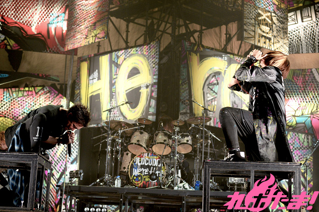 「Seek your turn」、「Harsh Wind」などお馴染みのナンバーではポジティブな熱気が会場に溢れ出し、Ta_2の「飛び跳ねな、騒ぎまくれ」という煽りで始まった「#4」では会場が一斉にジャンプ。続く「Frame in Flame」では左右のキャンバスに翼が描かれた。