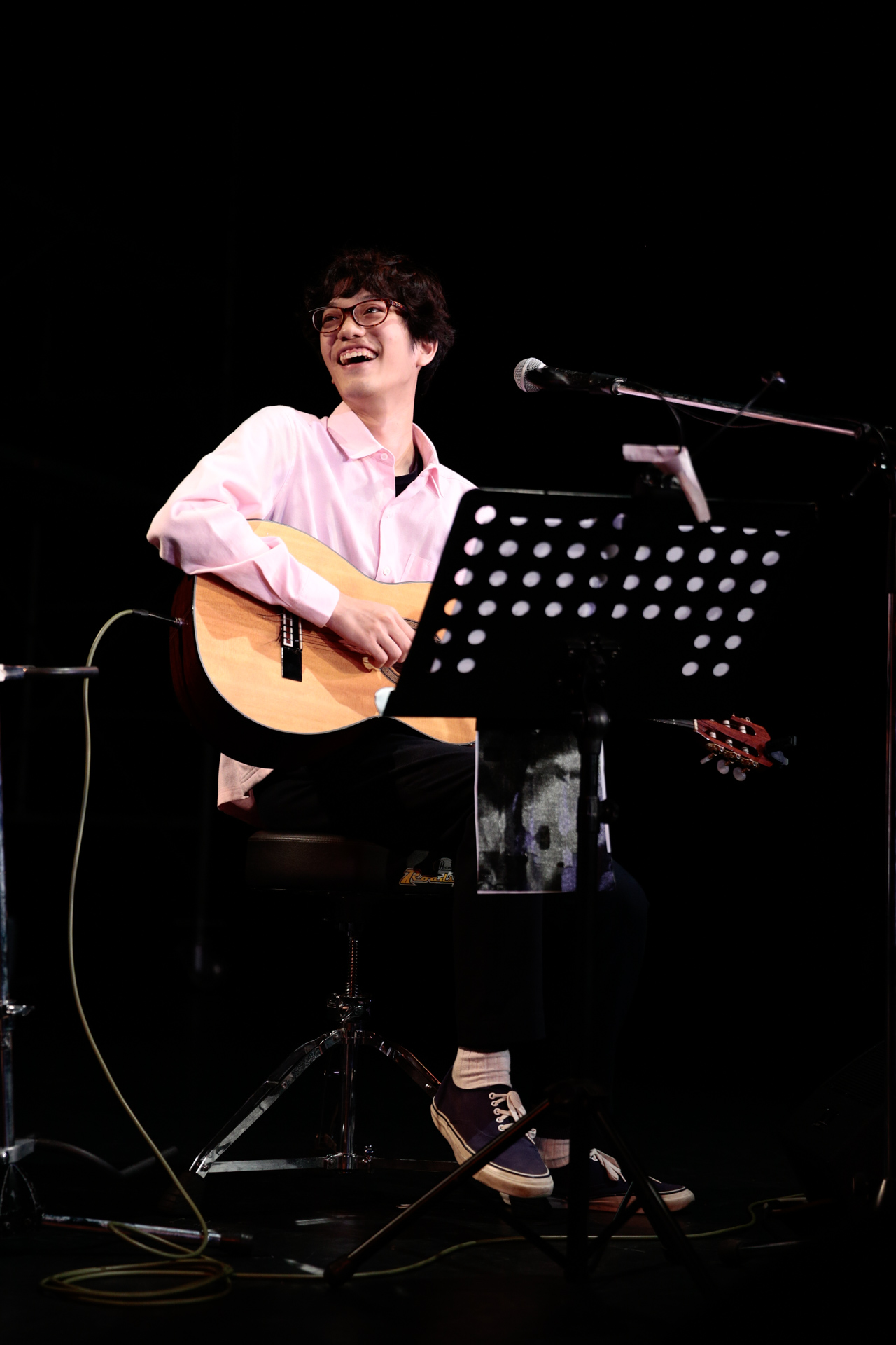 さっそく、1人目のゲスト・シンリズムが登場。8月に発売されたシングル「知らない気持ち」および、カップリング曲「ポラリス」の制作秘話を語るとともに、シンリズムが爪弾くギターとコーラスとともに楽曲を披露した。さらに、まさかのもう1曲……なんと、シンリズムもファンということから大江千里作詞・作曲の「神様のいたずら」が歌われたのだ。ノスタルジックなメロディに、2人の〝歌謡曲のDNA〟が響き合い、しっとり、やさしく心に触れていく。
