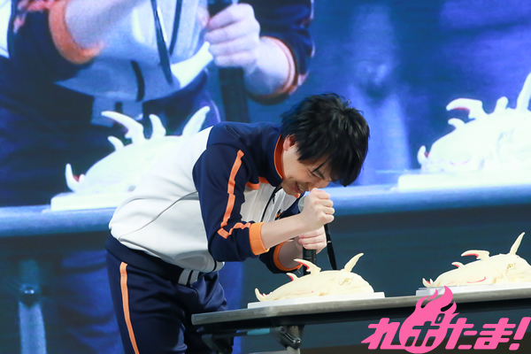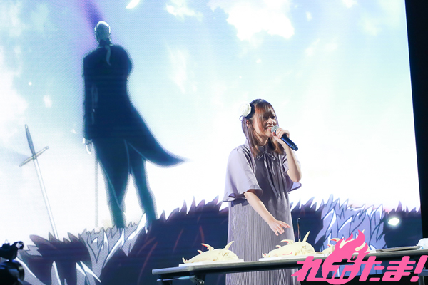 第3章の敵といえば白鯨、白鯨といえばヴィルヘルムが愛を叫ぶ場面。ということで最後は「白鯨入刀」と題し、白鯨に見立てたケーキにナイフを突き立て、映像に合わせて「私は、俺は、○○を愛してる」と愛を叫ぶクエストに挑戦。トリの小林から観客の気持ちを代弁するかのような熱い叫びが披露されるなど、客席を盛り上げた。