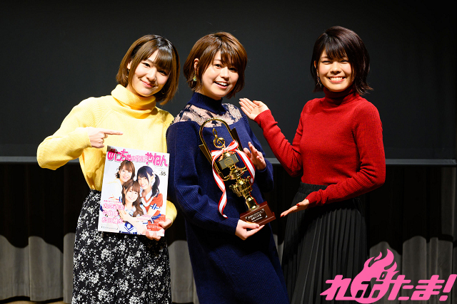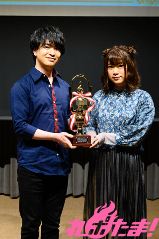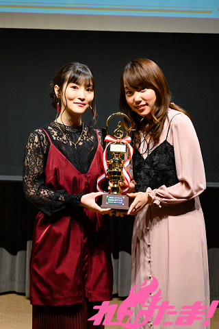 古賀さん「大変感無量でございます。ラジオが始まり1年半が経とうとしておりますが、まだまだ未熟です。でも、たくさんの方に楽しんでいただき、このような素晴らしい賞をいただけました。ありがとうございます! 現在ラジオCDが受付中ですので、たくさん予約してください! テレビアニメ第二期も放送開始で、ラジオとはまた違った世界観を楽しむことができると思います。キャラクターソングシリーズ第1弾が3月25日(水)に発売です。これからも続々発売予定ですので、こちらも予約をお願いします!」