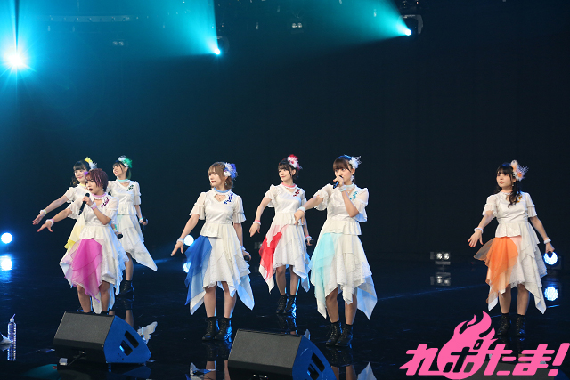 開演直前、いつもどおり円陣を組んで気合いを入れた7人。まずは挨拶代わりに「決断のDivergence」と「Into the Abyss」を投下し、久々のステージを感じさせないところをカメラ越しのファンに見せつけた。