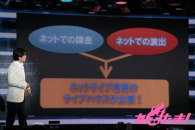 順調に会員数を伸ばす「ニコニコ動画」。有料化も行われた、ファン感謝イベント『ニコニコ大会議』も成功を収め、「ネットライブ専用のライブハウスの必要性が問われた結果、『ニコファーレ』の企画が立ち上がったとのことだ。