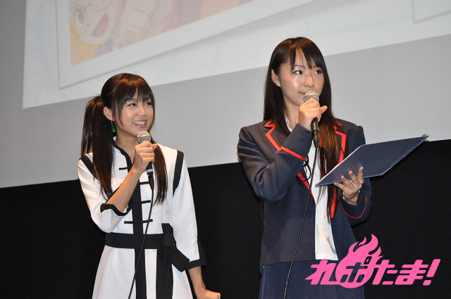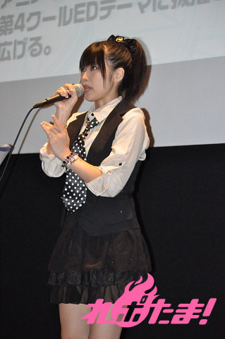 続いては、「カードファイト!!ヴァンガード」のアニメ展開について。こちらは、戸倉ミサキ役の橘田いずみとコーリン役の三森すずこがナビゲーターを務めた。まずは先導アイチ役の代永翼と雀ヶ森レン役の阿部敦からのビデオレター紹介。二人からはアニメの見どころなどが語られ、オープニング映像を注目して見ると今後の展開が何かわかるかもというヒントも飛び出した。放送局の追加も発表され、鹿児島放送と琉球朝日放送が加わった。そして新しいオープニングテーマ「Believe in my existence」を歌うJAM Projectからのビデオレターも紹介。メンバーは、このオープニングテーマがストーリーの盛り上がりに即した楽曲になっていると話し、今年のツアーでこの曲もやるのでぜひ観に来て欲しいと熱く語った。さらに10月からの新エンディングテーマ「Starting Again」を歌う佐咲紗花がステージに登壇。「カードファイト!!ヴァンガード」のエンディングを担当することに決まった感想として、「子供向けのアニメ主題歌を歌いたいと思っていたので、とても嬉しいです」と笑顔を見せた。オープニングテーマ「Believe in my existence」は10月5日、エンディングテーマ「Starting Again」は10月26日にそれぞれ発売となる。