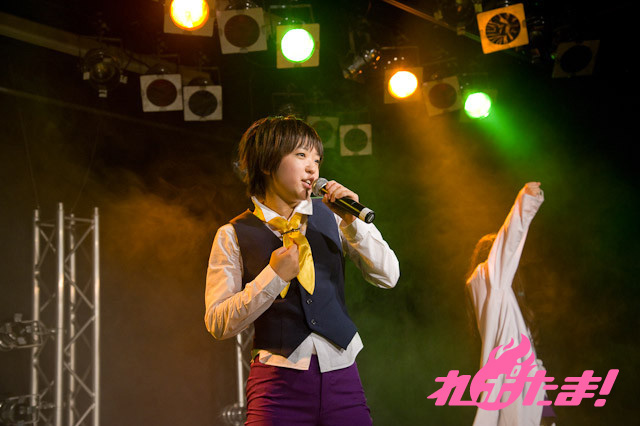 歌合戦の初戦はマイクスタンドを手にした合田さんによる丈途のキャラソン「Red Bible-紅い聖書-」vs黄色のポンポンを持った村井さんによる勝代のキャラソン「絶対!ポンポンガール♪」。続いての対決は、大人っぽく歌い上げた積田さんによる蘭のキャラソン「Cの花園」vs赤いライトに照らされ妖艶に歌い上げた小松さんによる来夏のキャラソン「パーフォレーション」。