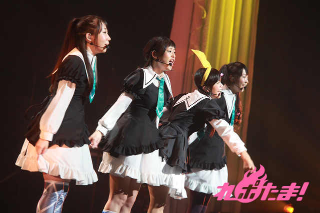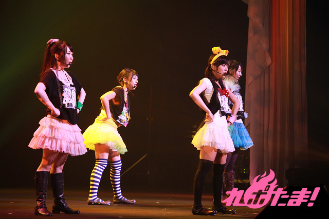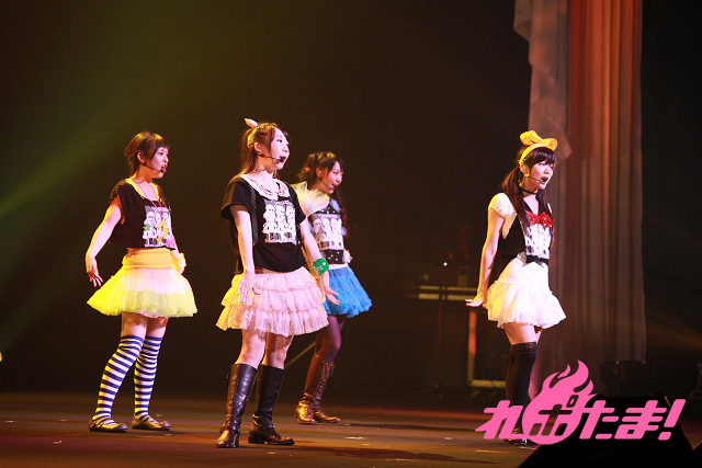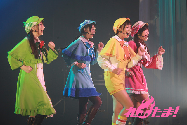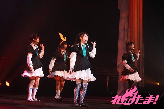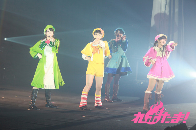 そしていよいよミルキィホームズの4人が登場!「正解はひとつ!じゃない!!」「恋の調査報告書」とアップテンポのナンバーで攻める。ツアーファイナルということで、4人のテンションものっけから最高点。「To-gatherしようぜ!!」の挨拶とともに「フレフレmy勇気」「こちらミルキィホームズ」とカラフルなサイリウムが輝く中で歌い上げた。