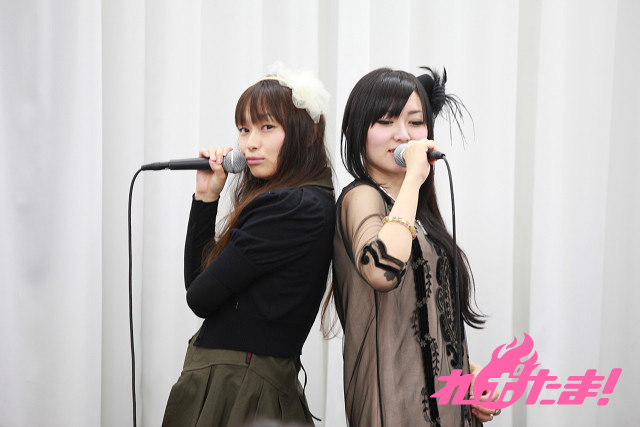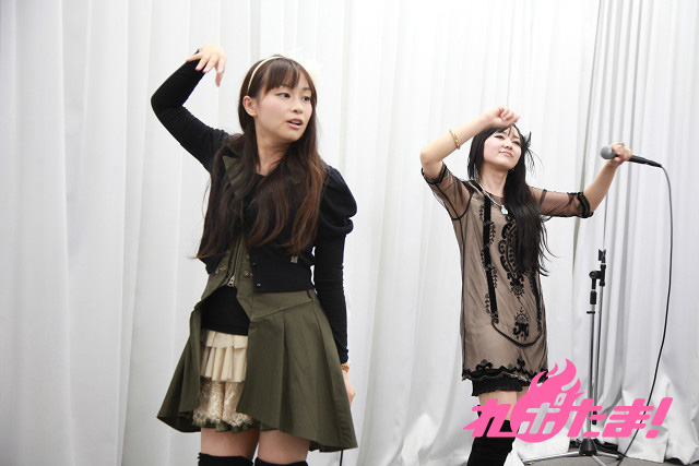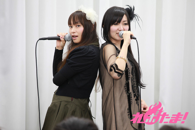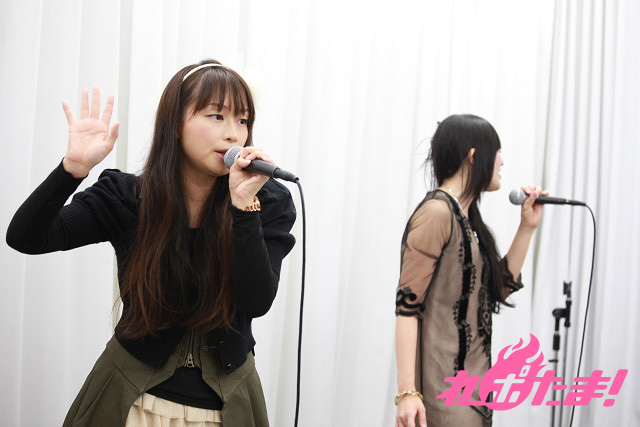 試しに歌詞の1番を歌い、感触を掴んだところでいよいよ本番。曲紹介で「パンドラの」部分と「夜」部分をどちらが言うかでジャンケンを行った後(二人いわく「夜」の言い方が難しいらしい)、今井、喜多村の順番で紹介し、ライブ開始!