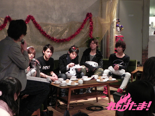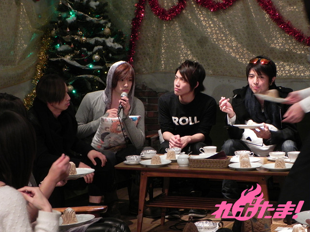 2011年12月22日から25日まで天王州銀河劇場にて再演されるスーパーミュージカル『聖闘士星矢』。再演に先駆け12月16日、原宿・ニコニコ本社2階のTEA ROOM 2525にてキャスト陣が参加するスペシャルトークイベントが開催された。この日イベントに駆けつけたのはドラゴン紫龍役の植野堀誠さん、キグナス氷河役の福山聖二さん、アンドロメダ瞬役の西村ミツアキさん、琴座のオルフェウス役の齋藤ヤスカさん、楯座のヤン役の林野健志さん、矢そして座の魔矢役の松岡佑季さん。集まったファンとともにケーキと紅茶を楽しみながらの和気あいあいとしたイベントとなった。