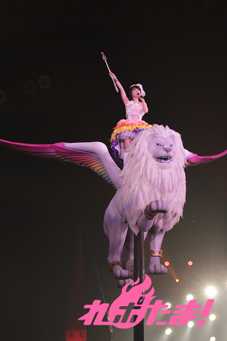 ライブも終盤戦に突入。プラネタリウムを彷彿とさせる映像がドームの屋根に映し出され、七色の羽根を持つライオンに乗って奈々ちゃんが登場。「UNBREAKABLE」「Stay Gold」を歌い上げた。