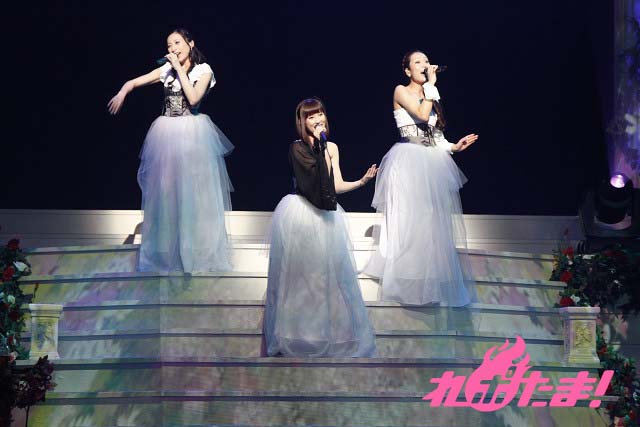 MCでは「冬・年末」に関するフリートークを展開。Wakanaは「最近人気映画のDVDを買いました」、Keikoは「アイスをよく食べます。夏よりもむしろ冬の方がアイスが美味しく感じます」、Hikaruは「肉まんがブームです」とコメントし、場内は笑いに包まれた。ライブ中の歌声とはまた別の表情を見せる。それもまた3人の魅力だ。