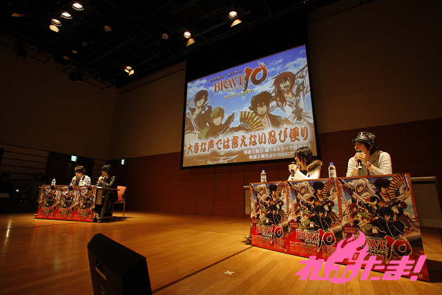 このイベントは第1話のアニメを除く部分はニコニコ生放送で同時配信もおこない、トークコーナーのあとはニコニコ生放送を使ったアンケート調査を実施。リスナーのコメントで熱いトークが繰り広げられるなど、盛り上がりをみせたイベントとなりました。『BRAVE10』はTOKYO MX、テレビ神奈川、チバテレビ、テレ玉、テレビ愛知、サンテレビ、BS11、アニマックスにて好評放送中。