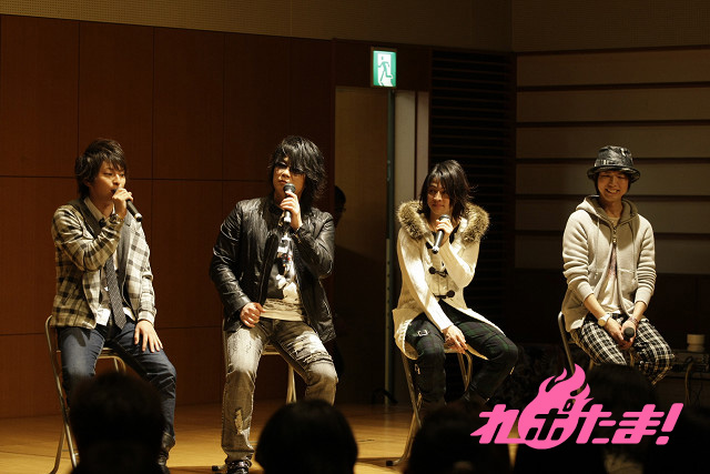 TVア二メ『BRAVE10』の放送に先駆けて行われた公開録音には、パーソナリティの柿原徹也さん(猿飛佐助役)、森川智之さん(真田幸村役)に加え、番組初ゲストに高城元気さん(由利鎌之介役)、神谷浩史さん(海野六郎役)を迎えました。ラジオ配信の第1回で公開録音をすることを公言し、ついに実現した今回のイベントには多くのファンが集まりました。まずは公開録音の内容を少しだけご紹介します。