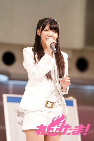 小倉は「思い入れたっぷり、神様の○○」と題して、自身がヒロインの声を務めたアニメ『神様のメモ帳』OPテーマ、ちょうちょの「カワルミライ」をギャラリーに手を振りながら披露した。