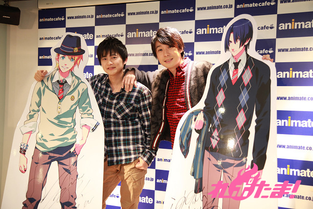 オープンを間近に控えた1月25日(水)、マスコミ向けのお披露目会が行われ、聖川真斗役の鈴村健一さん、来栖 翔役の下野 紘さんがゲストとして登場。カフェの魅力やコラボレーションメニューの紹介を行った。