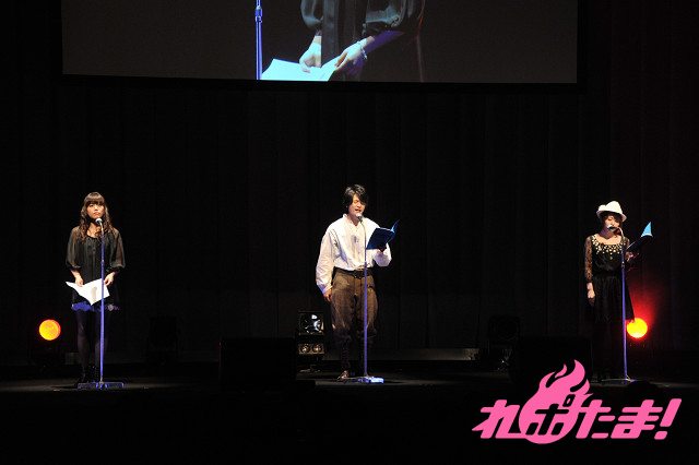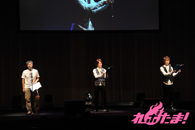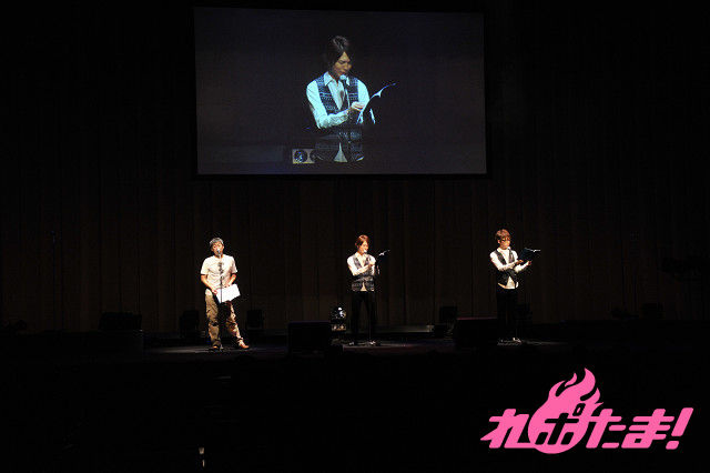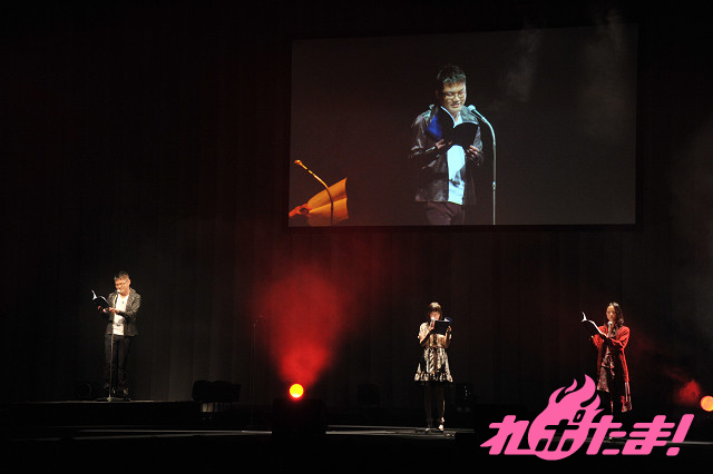 前半が終了したところで休憩に入り、プロデューサーと、出演を終えたばかりの伊藤、三宅が登場し、しばし観客はトークを楽しんだ。三宅は、「緊張しました」とコメント。そして客席の協力により「観客」の収録が行われた。2シーンの声を収録し、一発でOK。客席も一緒になって楽しめる素晴らしい企画だった。