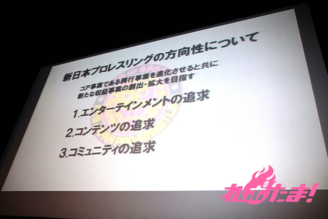 新日本プロレスの今後の展開を発表する戦略発表会が2012年2月29日(水)、秋葉原UDX TEATERで開催された。