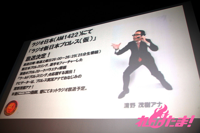 そしてメディアではテレビ朝日のプロレス情報番組『ワールドプロレスリング』と、ラジオ日本で始まる新番組『ラジオ新日本プロレス(仮)』の連動や、『カードファイト!ヴァンガード』のCMに中邑真輔、真壁刀義を起用するなど、新たな展開が多数発表された。
