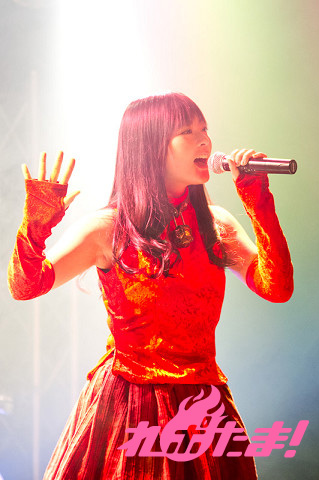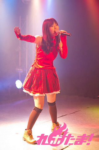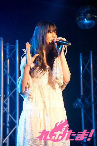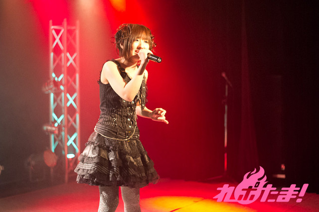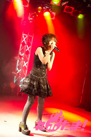 続いて披露されたTVアニメ『FORTUNE ARTERIAL 赤い約束』のエンディングテーマ「I miss you」では打って変わって優しく歌い上げ、さらにTV放送ではLiaさんが歌っていたオープニングテーマ「絆-kizunairo-色」をRock Styleとして披露。そして富樫さん自身が作詞を手がけた「アイノウタ」も披露され、詩について「ありがとうの気持ちを皆が応援してくれる歌やお芝居で返せる機会というのはなかなかないと思ったので、今回詩を書くにあたって感謝の気持ちを込めて書かせていただきました」と話した。