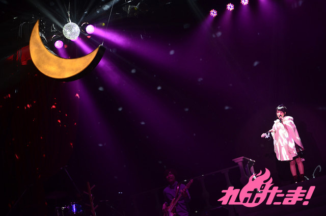 ギターの弾き語りで「サボテン」を披露し、そして「みなさんと出会えたことが、すごくすごく嬉しいです」と感謝の言葉を口にしつつ、しっとりと「メタメリズム」を歌うと、バックバンドのソロ演奏を挟んで、前半戦に着ていたワンピース風の衣装から「ペルシャ」の歌詞にあわせた白いコート姿に衣装チェンジ。