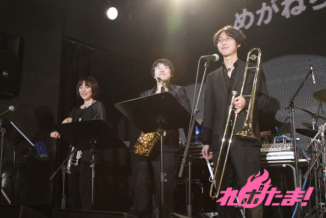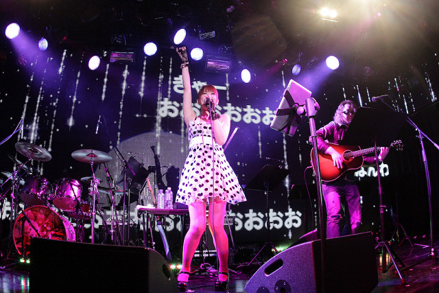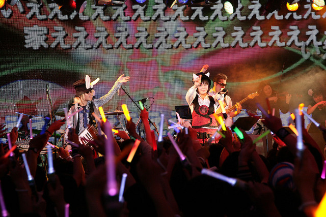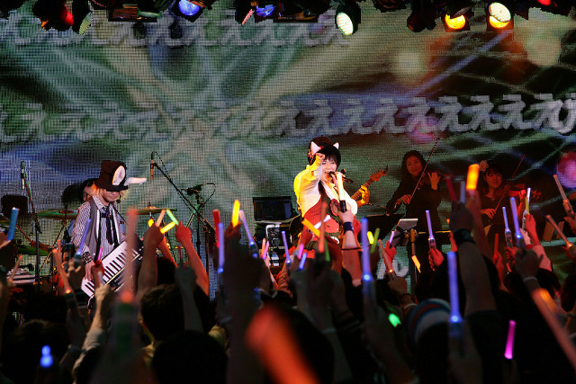 ここで再びave new;が登場。佐倉紗織は昼の部とは違う、水玉模様の衣装に身を包み「Eternal Wish」を激唱。「かやぴー」ことキーボードの柏森進の「三人寄れば文殊の知恵、4人でやれば……」というフリで「Mon-ju☆Brains」を4人で合唱。ヴォーカルのみ~こと佐倉がハイタッチを交わす一面も。