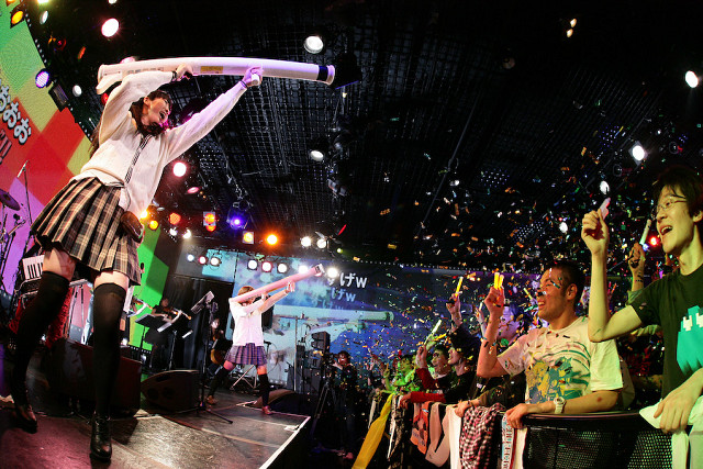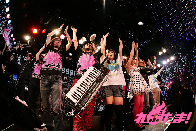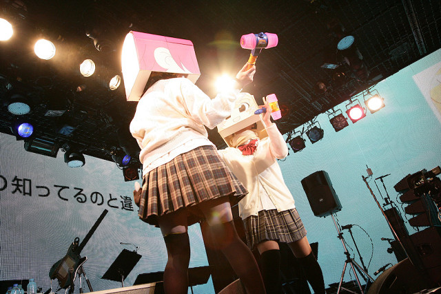 続いては『MOSAIC通り』の「アキバポップジャム」コーナーから、アニメ『地球少女アルジュナ』OPテーマ坂本真綾さんの歌う「マメシバ」と、アニメ『サザエさん』OPテーマ「サザエさん」を融合させた「地球少女サザエさん」が弦楽器の調べに乗せて披露され、アンコールでは「TAPDO!」のスリッパとパイプを使ったパフォーマンスのイントロから「脳・内・再・醒~ecphoric dance~」がスタート。そして「時空間超越√ライブラリィ」との本日2度目のコンボ。「死ぬかと思った……」と言いつつも見事に歌いきったみ~こ対し、場内から大歓声が沸きあがった。