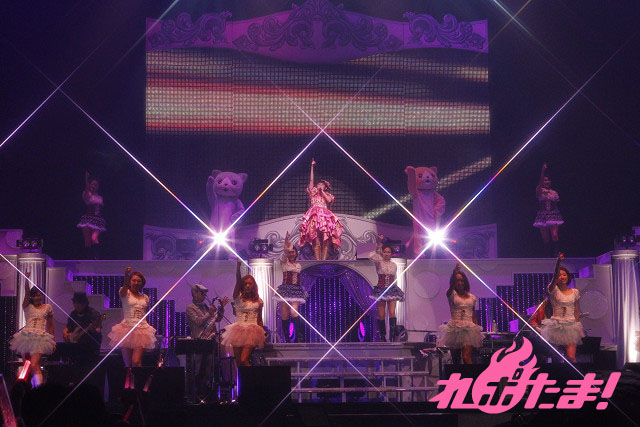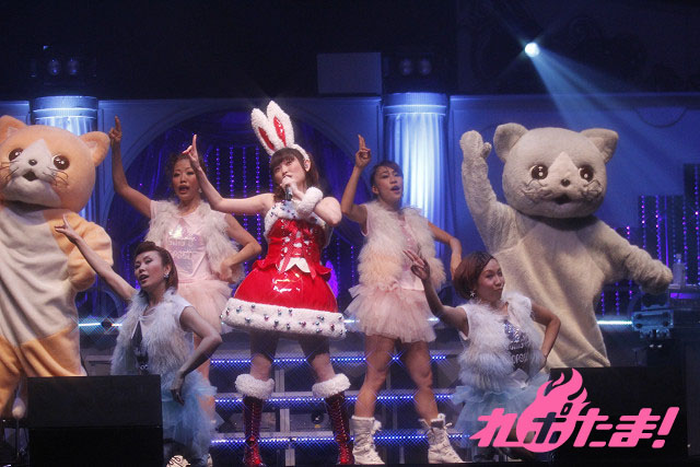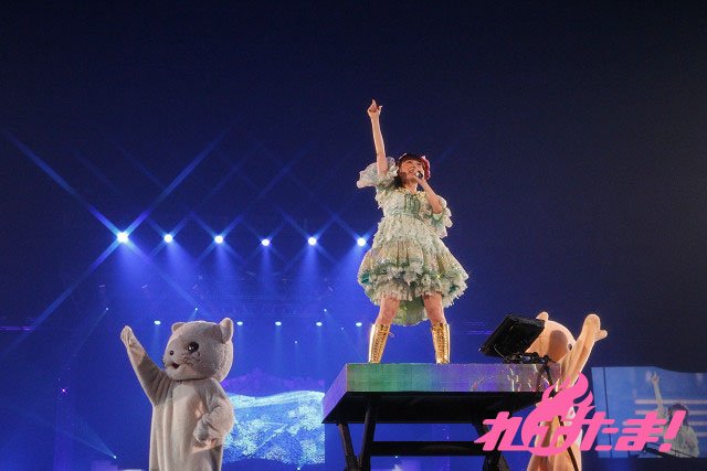 衣装も、淡いブルーのふわふわしたドレスからブルーの落ち着いた感じのドレス、真紅のドレス、サンタコスのような衣装にウサミミ、金の刺繍が入った白のゴージャスな衣装など頻繁にお色直しが行われ、ファンの目を大いに楽しませた。もちろん衣装チェンジの間は、観客を飽きさせないための様々な趣向も用意。80年代歌アイドルを彷彿とさせる聖子ちゃんカット風の田村がスクリーンに登場し、昭和アイドル歌謡のようなオリジナル曲を歌って審査員が審査するといった映像や、今回のツアーの最中に行われた奈良公園でのシカせんべいをシカに与えるゆかりんのコミカルな様子などを映したVTRが流され、客席からは何度も爆笑が巻き起こった。