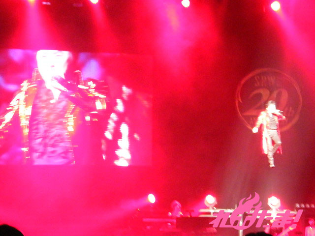 ここで再び水木さんが登場! スーパーヒットメドレーを熱唱した。曲目は、「おれはグレートマジンガー」、「コン・バトラーVのテーマ」、「鋼鉄ジーグのうた」だ。どれもファンにはおなじみのナンバーで、会場は再びアツく燃え上がった。